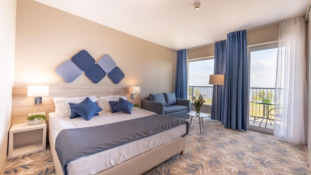 W obiekcie do dyspozycji Gości znajduje się strefa basenowa (kryty basen, brodzik, sauna i jacuzzi), 2 sale zabaw dla mniejszych dzieci oraz 2 sale gier (elektronicznych i zręcznościowych oraz bilardowa). Na terenie obiektu znajdują się 3 sale restauracyjne, gabinety masażu i rytuałów SPA, lobby bar oraz Sky bar na najwyższym tarasie w Mielnie (otwarty w sezonie letnim).