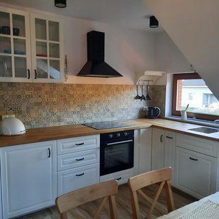 Salon z wygodną rozkładaną sofą (z możliwością spania dla 2 osób) i fotelem zapewni wypoczynek przed telewizorem z filiżanką dobrej kawy lub aromatycznej herbaty. Świetnie urządzony aneks kuchenny umożliwia przygotowanie dla całej rodziny i wspólne spożywanie posiłków oraz narady rodzinne przed wyruszeniem na piękne nadmorskie szlaki. Na balkonie, wyposażonym w meble ogrodowe, można wylegiwać się do woli - korzystać z ciepłych, słonecznych promieni za dnia oraz podziwiać zachód słońca nad ruchomymi wydmami.