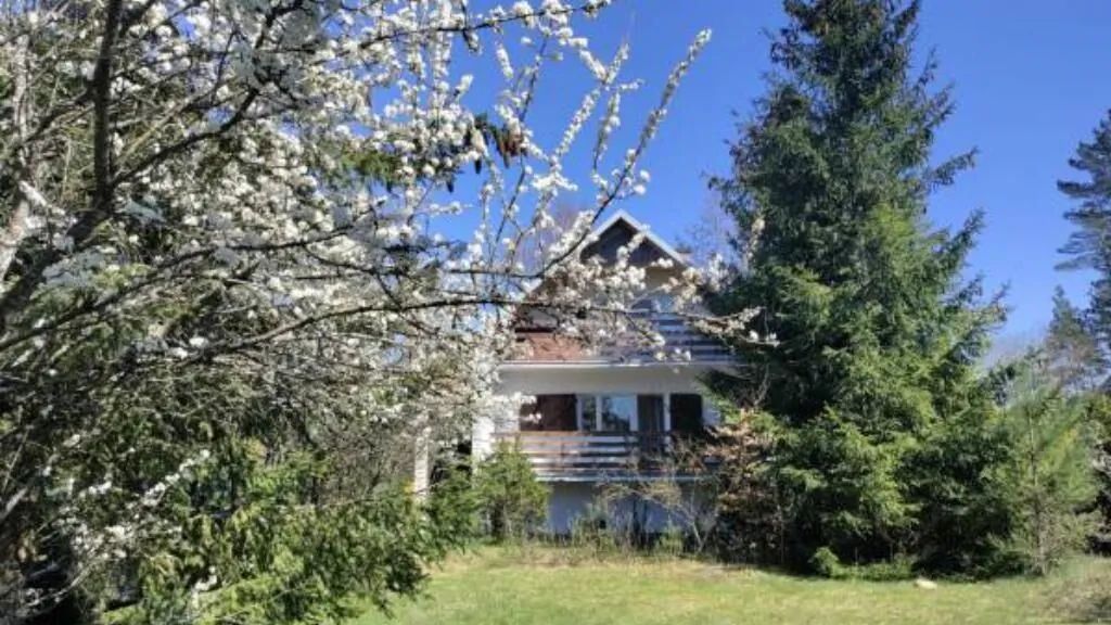 • domek stoi na sporej, ogrodzonej działce, naturalnie, trochę dziko zarośniętej, z dogodnym miejscem do opalania się