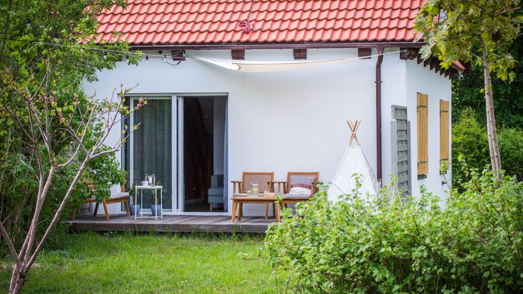 Domek Meteo składa się z przytulnego salonu, w pełni wyposażonej kuchni i eleganckiej jadalni. Wszystkie pokoje są gustownie urządzone, zapewniając atmosferę relaksu i spokoju. Na zewnątrz znajduje się przestronny taras, idealny do delektowania się poranną kawą.
