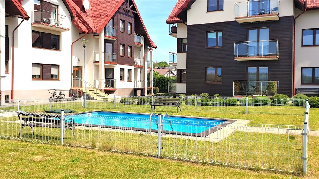 Teren budynku ogrodzony i monitorowany. Dla gości bezpłatnie plac zabaw i letni basen dla dzieci. Do apartamentu przynależy również bezpłatne miejsce parkingowe. W budynku znajduje się bezpłatna siłownia. Miejsce godne polecenia według Nocowanie.