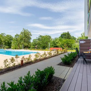 sierpień 2025Jó az apartman elhelyezése 10 perc sétára a Balaton. Belváros közelsége minden séta távra van. Tiszta rendezett az apartman. Nagyszerű a zárt parkoló és a medence.