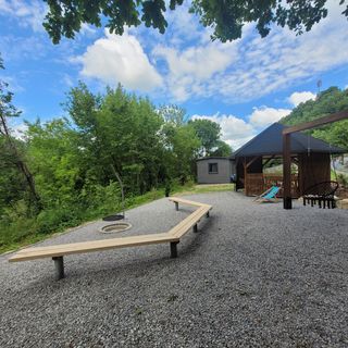 Na zewnątrz altanka oraz miejsce na ognisko.