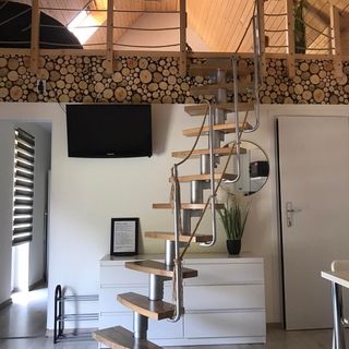 -Sypialnie 2 osobową ( antresola z dużym materacem ) + możliwość dostawki materaca na 1 osobę
