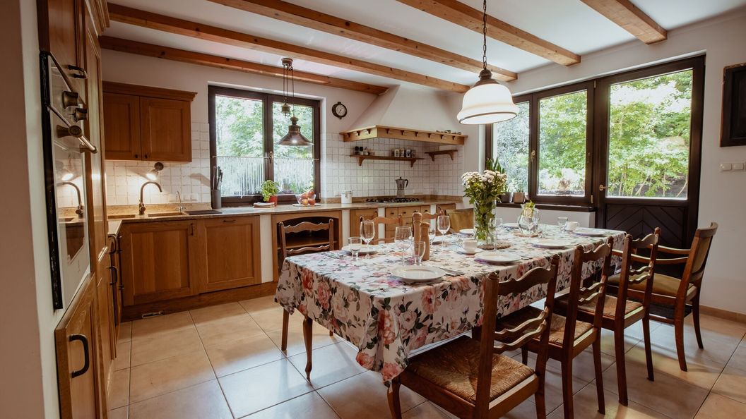 WYPOSAŻONA KUCHNIA: w pełni wyposażona jak w kuchni domowej plus express do kawy JURA, kawiarka włoska, toster, mikrofala, żyrafa do miksowania, gary, blachy, patelnie, naczynia do serwowania, szkło do wina i piwa.