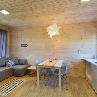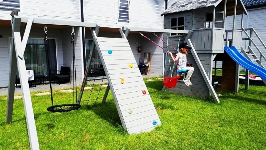 Każda sypialnia wyposażona jest w wygodne dwuosobowe łóżko oraz rozkładaną kanapę. Do dyspozycji gości oddajemy w pełni wyposażone kuchnie, przestronny plac zabaw, taras oraz parking. Nasz ośrodek jest ogrodzony całodobowo monitorowany.