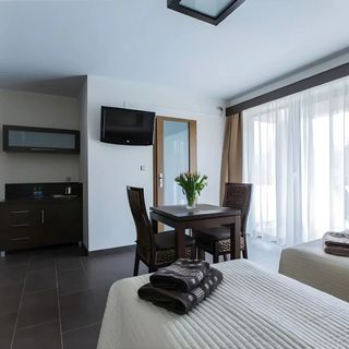 Na terenie obiektu dostępny jest bezpłatny parking, dzięki czemu osoby podróżujące samochodem mogą bezpiecznie pozostawić swój pojazd na miejscu. Obiekt nie oferuje wyżywienia, co daje gościom pełną swobodę w planowaniu posiłków i korzystaniu z licznych restauracji oraz kawiarni znajdujących się w Helu.