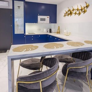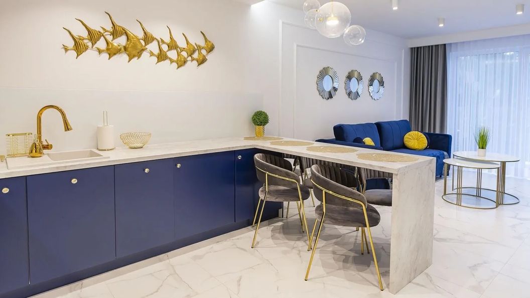 Do dyspozycji naszych Gości jest nowoczesny aneks kuchenny z lodówką, kuchenką mikrofalową, ekspresem do kawy, zmywarką oraz kompletem naczyń i akcesoriami kuchennymi, szklanki i kieliszki do wina. Wszystko co niezbędne, aby samodzielnie przygotować posiłki i cieszyć się wspólnymi chwilami w gronie rodziny lub znajomych.