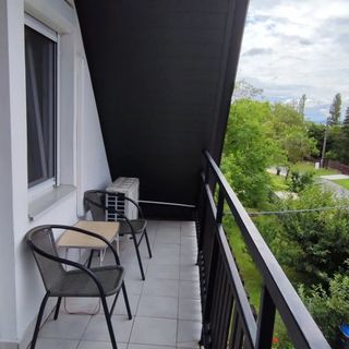 lipiec 2024Közel a Balaton, a strand és a vasút. Klímás a szoba. Részben szúnyoghálós. A közös erkélyeket reggel és este lehet használni (a nap nagy részében odatűz a nap és felforrósodik).