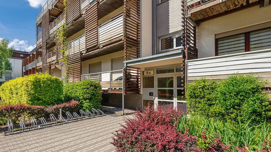 Cześć apartamentów posiada miejsce parkingowe na zewnątrz lub w garażu, dodatkowo płatne.