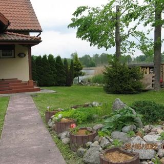 lipiec 2017Dom bardzo duży, czysty i zadbany, z wlasna linia brzegową i dużą działką. Spokojna okolica. Małe jezioro ale czyste . Plac zabaw dla dzieci z trampolina i hustawkami. Łódka i rower wodny. Byliśmy w dużej grupie 6 osób dorosłych i 5 dzieci ale dom jest przestronny i komfortowy nawet dla większej grupy. Udogodnienia dla niemowląt -łóżeczko wanienka krzesełko do karmienia. Dwie duże łazienki. Kuchnia w pełni wyposażona - piekarnik i zmywarka. Można zamówić obiady z dowozem. Grill i palenisko. Uroczy kominek. Taras duzy i zadaszony mozna odpoczywac w cieniu :).Właścicielka przemiła i pomocna .Dom nam się bardzo podobał. Spędziliśmy wspaniały urlop i serdecznie polecamy zwłaszcza rodzinom z dziećmi i grupom przyjaciół