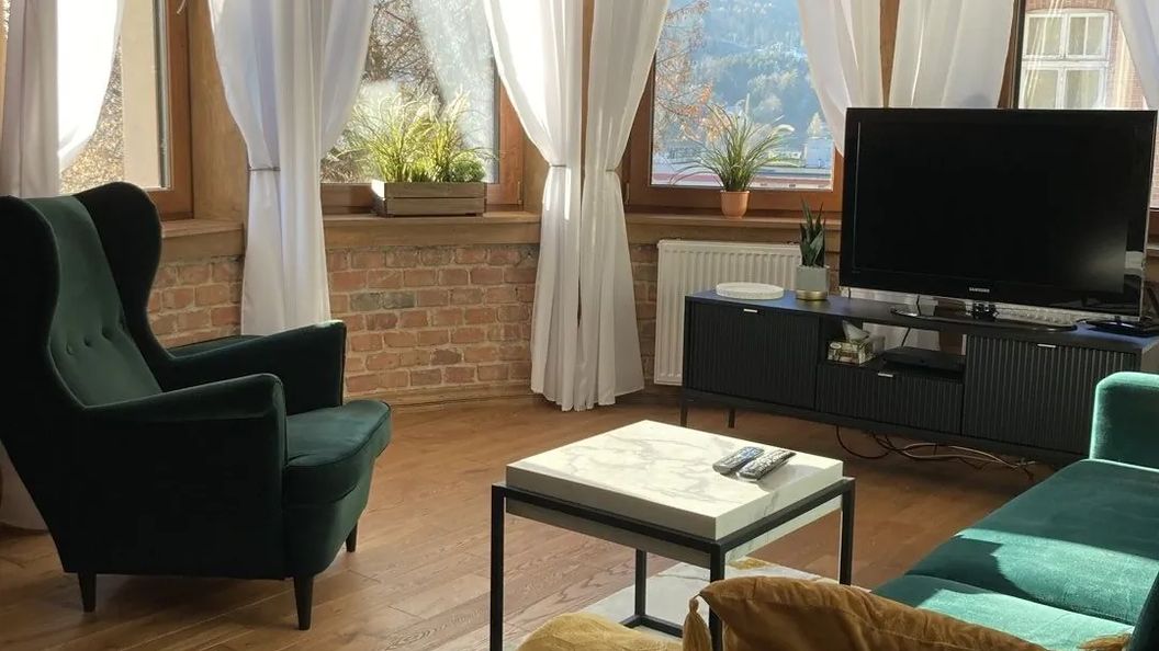 To wyjątkowe miejsce ma własny styl . Apartament położony jest na uroczej spokojnej ulicy Kiepury nieopodal parku zdrojowego i deptaku. Trzypokojowe mieszkanie w budynku z 1910 r. jest po generalnym remoncie i zostało wyposażone bardzo komfortowo i gustownie. Nawet 6-osobowa rodzina spędzi tu miły urlop. Dookoła budynku jest ładnie zagospodarowany teren. Ponieważ budynek położony jest na zboczu góry konieczne jest dojście schodami z poziomu ulicy.