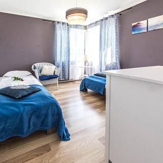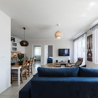 Nowoczesny, wygodny apartament zaprojektowany tak, by sprostać oczekiwaniom nawet najbardziej wymagających gości. Apartament Niebieskie Migdały to apartament 3-pokojowy o powierzchni 50 m2. Jest położony na I piętrze budynku, przeznaczony dla maksymalnie 6 osób.