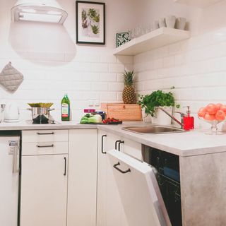 Kuchni w której znajdują się wszystkie niezbędne przybory oraz lodówka, płyta grzewcza, mikrofalówka, podstawowa zastawa stołowa, czajnik elektryczny, zestaw do parzenia kawy i herbaty.
