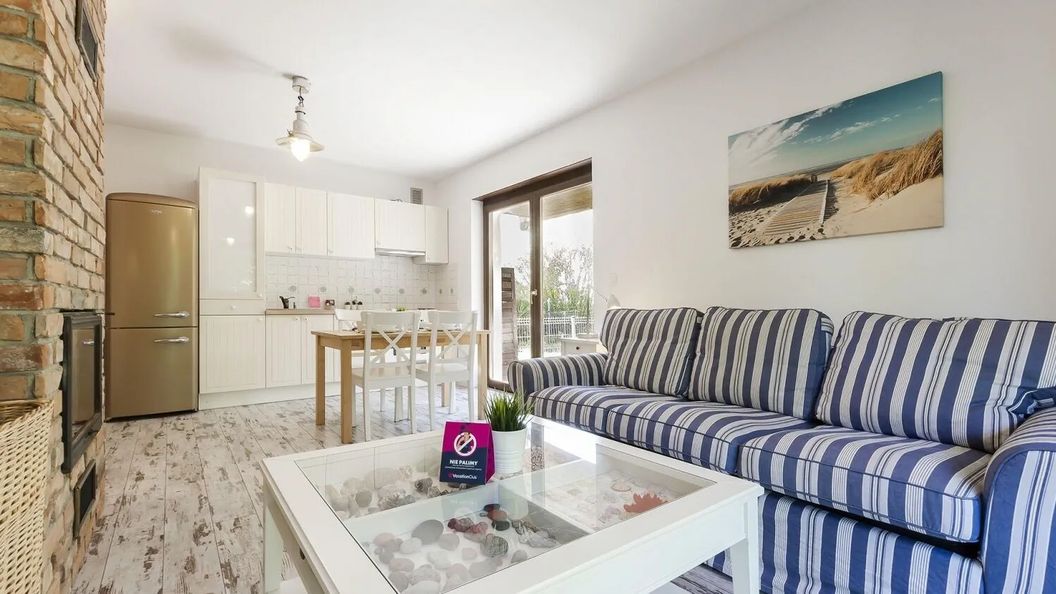 VacationClub™ Plażowa 7, Apartament 2 mieści się na parterze w kompleksie mieszkaniowym, który łączy bliskość natury z komfortem użytkowania. Wszystko po to, by każdy mógł cieszyć się pięknem Bałtyku i jednocześnie nie rezygnował z udogodnień nadmorskiego kurortu. Apartament składa się z sypialni z dwoma pojedynczymi łóżkami z możliwością złączenia, przestronnego salonu z rozkładaną sofą oraz kominkiem, łazienki z wanną oraz aneksu kuchennego. Do lokalu przynależy duży taras, z którego rozciąga się widok na zieleń ogródka i posesji, co stanowi idealne rozwiązanie dla osób ceniących spokój i wygodny odpoczynek w przyjaznej, rodzinnej atmosferze. Na terenie znajduje się bezpłatne miejsce parkingowe przeznaczone wyłącznie dla Gości apartamentu.