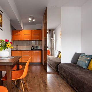 Apartament przewidziano dla czterech osób. Pokój sypialny z dużym łóżkiem, ma również balkon. Wyposażenie aneksu kuchennego obejmuje wszystkie potrzebne Gościom rzeczy, by samodzielnie przyrządzić prosty posiłek (płyta indukcyjna, czajnik, przybory kuchenne).