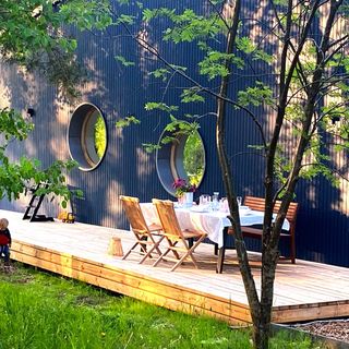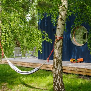 * duzo mebli ogrodowych jak hamaki, lezanki, stoly i krzesla