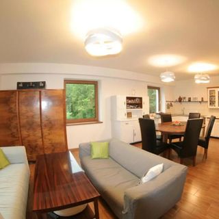 Do 12 osób wynajmujemy parter domu. Jeśli chcecie skorzystać też z góry prosimy o kontakt. Cena wynajmu domu na prywatność, z 2 hektarami zielonej przestrzeni i zapasem drewna na ognisko za 1 noc: