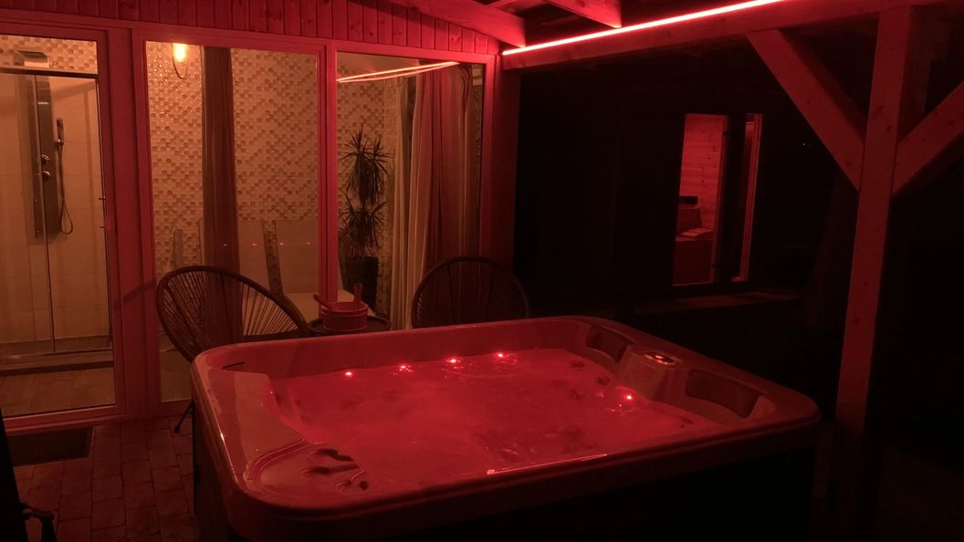 Remek a szauna és a jacuzzi és pompás a pihenőhelység is. Nincsenek zavaró szomszédok, teljes a nyugalom, zavartalan az intimitás. Közel a bolt, minden adott a teljes kikapcsolódáshoz. A tulajdonos kedves, segítőkész, ennél több nem kell.