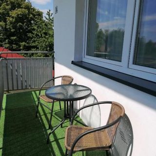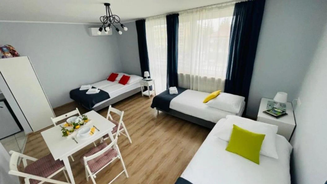 Do dyspozycji gości oddano samodzielny, 4-osobowy apartament, który zapewnia prywatność i niezależność. W jego wnętrzu znajduje się funkcjonalny aneks kuchenny, wyposażony w lodówkę, płytę kuchenną, kuchenkę mikrofalową oraz czajnik elektryczny. Komfort termiczny przez cały rok gwarantuje klimatyzacja, a dodatkową przestrzeń do relaksu stanowi prywatny balkon. Wyposażenie uzupełniają telewizor z płaskim ekranem oraz suszarka do włosów w łazience.