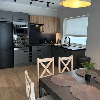 Domek to doskonała propozycja dla wszystkich poszukujących odpowiedniego komfortu. W pełni wyposażona kuchnia, w której znajduje się m.in. mikrofalówka, toster czy ekspres do kawy, umożliwia przygotowywanie posiłków na miejscu. Taras pozwala natomiast raczyć się pyszną kawą w otoczeniu górskiego krajobrazu. Na parterze domu znajduje się kuchnia, pokój dzienny z jadalnią oraz łazienka. Na piętrze, na które prowadzą schody, są 3 pokoje oraz w pełni wyposażona łazienka, a także balkony, z których można podziwiać leśną okolicę.
