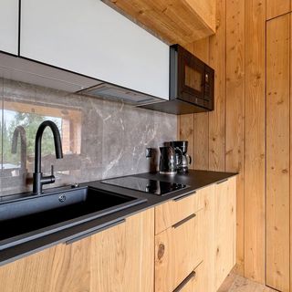 Aneks kuchenny: nowoczesna zabudowa kuchenna z lodówką, płytą indukcyjną, mikrofalą, zmywarką, zlewozmywakiem. Wyposażony jest w czajnik, ekspres do kawy, toster, garnki, patelnie i zastawę stołową.