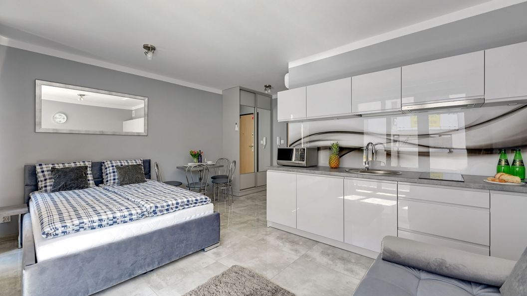 Oferujemy Państwu komfortowy apartament idealny na wakacyjny pobyt, zlokalizowany w nadmorskiej miejscowości Stegna. Apartament ma 24 m2 powierzchni i może nocować w nim do 3 osób. Otwarty salon połączono z aneksem kuchennym oraz wyjściem na taras, który przez większą część dnia skąpany jest w słońcu. W bocznych strefach studio umiejscowiono kanapę, która po rozłożeniu zmienia przestrzeń w część sypialną, oraz łóżko podwójne sypialniane. Część kuchenna to w pełni wyposażony aneks. Oprócz płyty grzewczej i lodówki znalazły się tam także mikrofalówka oraz czajnik. Dla naszych gości przygotowaliśmy także niezbędne naczynia, sztućce, kawę i herbatę. Na komfortowe zjedzenie posiłku pozwoli stół jadalniany. W upalne dni, możemy obniżyć temperaturę za sprawą klimatyzacji. Studio posiada własną łazienkę z prysznicem. Zapewniamy ręczniki i pościel. Akceptujemy zwierzęta domowe za dodatkową opłatą. Do apartamentu przynależy prywatne miejsce postojowe.