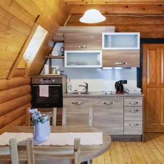 - Dom wykonany z drewna i cegły