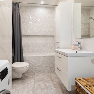 Łazienka: wanna z funkcją prysznica, umywalka, toaleta, pralka
