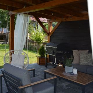 Na zewnątrz nasi goście również mogą korzystać z dużego ogrodu oraz stojącej w nim altanki.