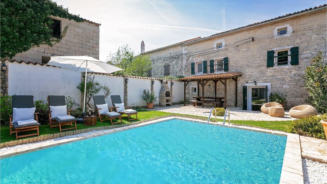 Kamienny dom wakacyjny w zabudowie bliźniaczej, zlokalizowany w miejscowości Baderna na półwyspie Istria, dysponuje prywatnym ogrodem i jest przystosowany do pobytów przez cały rok.