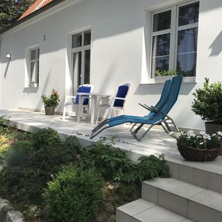 Pokoje i apartamenty na parterze z tarasami (na ich wyposażeniu meble ogrodowe oraz leżak).
