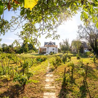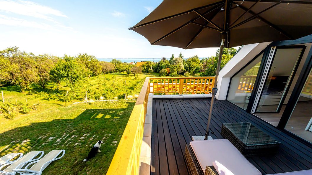 czerwiec 2025Óriási kert, szőlőtőkékkel övezve. Gyönyörű részpanoráma a balatonra. Csendes környék, jó kikapcsolódásra. Aránylag közel vannak a pincészetek.