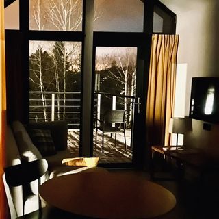 Całoroczny domek 35m2 typu nowoczesna stodoła o podwyższonym standardzie z dużym tarasem 17m2. Domek jest ekologiczny, czysta woda czerpana jest ze studni głębinowej, energię pozyskujemy z paneli fotowoltaicznych, a całość dopełnia ekologiczna oczyszczalnia.