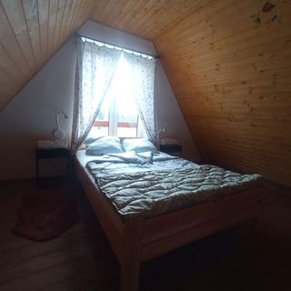 lipiec 2024Barátságos hangulatú erdei házikó, árnyékot adó fák között. Kitűnő bázis a környékbeli túrákhoz.