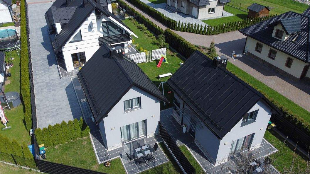 Dla Państwa mamy do zaoferowania dwa domki. W każdym domku znajduje się salon z częścią jadalną, z wyjściem na prywatną część ogródka.