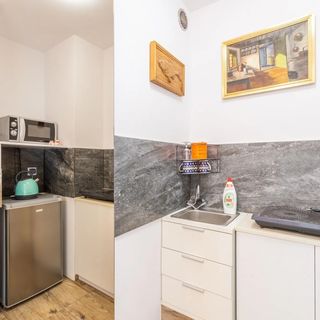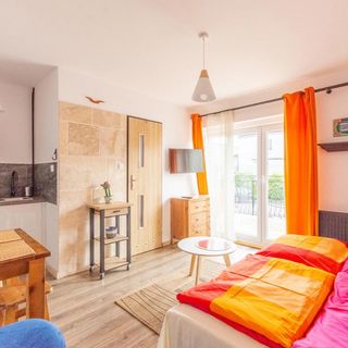 Dobry kontakt z właścicielem - zameldowanie w trybie ekspresowym bez zbędnych formalności, także super. Parking - nawet jeśli parking jest na początku przepełniony to później się rozluźnia i można bez problemu zająć miejsce parkingowe na ulicy. Plusy: - do morza ok. 20 min drogi - ładne, dobrze zaopatrzone (naczynia, mikrofalówka, lodówka, suszarka do ubrań) pokoje - wifi - cena 60 zł osobodoba Minusy: - ze względu na bliskość torów, pociągi mogą obudzić :/ - tv (mało kanałów, głównie tvp) Jeżeli miałabym przyjechać kiedyś do Kołobrzegu, to tutaj zawitałabym ponownie.