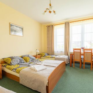 wrzesień 2012Dom Gościnny wygląda na nowo wybudowany obiekt. Do wynajęcia do wyboru są pokoje 2,3,4, a nawet 5osobowe. W pokoju jest do naszej dyspozycji prywatna łazienka. Ponadto w domu udostępniono dobrze wyposażoną kuchnię. W ogrodzie znajduje się altana z grillem, plac zabaw dla dzieci i boisko do piłki nożnej. Obiekt jest ogrodzony i posiada miejsce parkingowe.