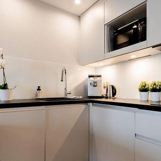 W apartamencie znajduje się aneks kuchenny przystosowany do zaspokajania codziennych potrzeb. Do dyspozycji Gości są sprzęty AGD m.in. lodówka, płyta elektryczna z okapem oraz komplet naczyń, sztućce, akcesoria kuchenne, szklanki i kieliszki do wina. Wszystko, co potrzebne by samodzielnie przygotować posiłki i cieszyć się wspólnymi chwilami z bliskimi.