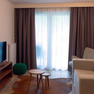 VacationClub™ Apartamenty Zakopiańskie Apartament 214 to 3-pokojowy apartament z południowa ekspozycją, znajdujący się na drugim piętrze nowoczesnego kompleksu apartamentowego. Apartament posiada przestronny salon z sofą, aneks kuchenny i część jadalnianą, sypialnię z łóżkiem małżeńskim oraz pokój z dwoma pojedyńczymi łóżkami. Usytuowany w spokojnej dzielnicy Zakopanego nieopodal Bachledzkiego Wierchu oraz ośrodku narciarsko-rekreacyjnego Harenda (2,5 km). Miłośnicy długich wędrówek górskich oraz sportów zimowych z pewnością odnajdą w naszym obiekcie idealne miejsce do wypoczynku i regeneracji. Nasza strefa rekreacji, znajdująca się w centralnej części budynku, została stworzona z myślą o Gościach i oferuje szeroki wachlarz udogodnień. W skład tej strefy wchodzą: sauna sucha i mokra, jacuzzi, miejsce z solną ścianą oraz wygodne leżaki do relaksu. Dla tych, którzy preferują aktywność fizyczną, dostępna jest także siłownia. Dbając o naszych najmłodszych Gości, przygotowaliśmy kompleks rozrywkowy, który obejmuje dobrze wyposażoną salę zabaw oraz brodzik wodny, umiejscowiony obok jacuzzi. Dla większości naszych apartamentów roztacza się malowniczy widok na Tatry, w tym na szczyty, takie jak Giewont, Gubałówka i Harenda.