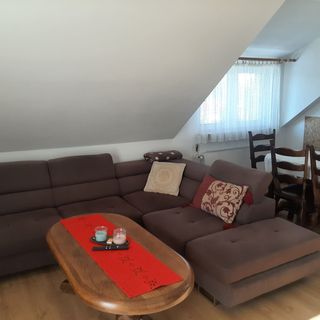 oferuje 8 ( maksymalnie 10 ) miejsc noclegowych w dwóch sypialniach. Każda sypialnia jest 4- osobowa i znajdują się w niej : 1 łożko 2-osobowe oraz 2 łóżka 1-osobowe ( sypialnie po 16 m2) . Dodatkowe 2 osoby mogą spać w salonie ( jest tam rozkładana kanapa). W Domku jest jeszcze salon z jadalnią , kuchnia w zabudowie w pełni wyposażona, łazienka , przedpokój, dwa balkony. Domek ma wielkość ok. 90m2, jest przytulny , jasny i ładnie urządzony. Ogrzewany jest piecem na ekogroszek. Parking znajduje się pod domem - teren ogrodzony.