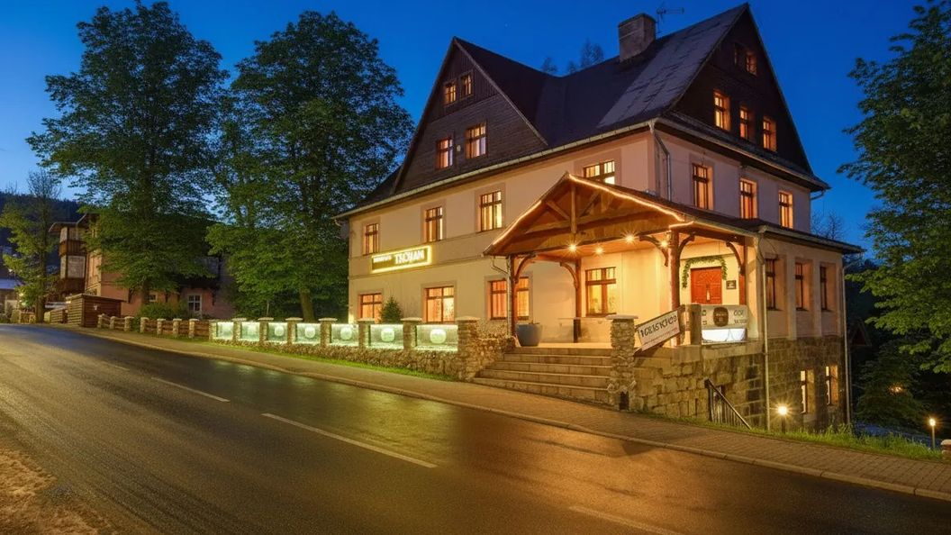 Jeśli przebywam w obiekcie co do którego nie mam zastrzeżeń i jestem zadowolony z pobytu to mam zasadę: nie dzielę się opinią na portalach. Po przeczytaniu opinii Pani ANNY ,muszę jednak odstąpić od mojej zasady. Wobec tendencyjnej i niesprawiedliwej a momentami kłamliwej oceny nie mogę przejść obojętny i przedstawię swoje odczucia z pobytu w Rezydencji Trojan. Do rezydencji przybyliśmy w sobotę 23.12.2023 r. ok. godz. 12.00. gospodarz obiektu Pan Jerzy mimo, że zakwaterowanie mieliśmy od godz. 15.00 bez problemu zakwaterował nas i pomógł przenieść bagaże do pokoju . W pokoju było chłodno ok. 14 st Celsjusza gospodarz Pan Jerzy zapewnił nas że ok. godz. 15.00 Temperatura będzie ok. 18-20 st. i tak tez było. (W tym miejscu aż mnie niesie aby odnieść się do naciąganej oceny pani ANNY cyt.: W Wigilię mąż jeździł po mieście, żeby kupić jakiś grzejnik bo temperatura w pokoju wynosiła max do 15°C. być może jeździł ,ale z pewnością grzejnika nie kupił bo w wigilię sklepy były zamknięte. Grzejników nie trzeba było kupować , były dla gości postawione przy Sali kominkowej gdyby komuś były potrzebne.) Pan Jerzy przekazał mi stosowne informacje dot. naszego ( ja z rodziną ) pobytu, w tym także informacje dotyczące korzystania z Sali kominkowej, Sali zabaw dla dzieci i narciarni. Sala kominkowa jest bardzo klimatyczna w stylu góralskim z kominkiem, który jak powiedział nam Pan Jerzy będzie rozpalany na życzenie gości. W pierwszym dniu naszego pobytu nie korzystaliśmy z Sali kominkowej. W następnych dniach po obiadokolacji ( po godz. 17.00 ) jeśli tylko było miejsce w Sali kominkowej zajmowaliśmy miejsce i raczyliśmy się między innymi nostalgicznym ogniem z kominka. Ostatni wsad do kominka Pan Jerzy lub Pan Bernard ( dodatkowa pomoc dla gości ) robili o godz. 23.00 tym samym do godz. 2.00 mieliśmy ciepło i przyjemnie. Sala kominkowa była codziennie oblegana a pewna rodzina jeszcze przed obiadokolacją Zajmowała dla siebie najlepsze miejsca ale nam to nie przeszkadzało . W czasie gdy byliśmy w Sali kominkowej nasze dzieci bawiły się w Sali z zabawkami. Sala kominkowa i sala z zabawkami były naprzeciw siebie a to dawało nam komfort opieki nad nimi. W Sali z zabawkami było mnóstwo zabawek niektóre z nich uszkodzone ale to przecież tylko dzieci. Śniadania w formie BUFETU SZWEDZKIEGO bardzo smaczne różnorodny wybór i podane w ładnej formie. Co do bufetu szwedzkiego to nie zgadzam się z ocena Pani Anny. Mi, forma serwowania obiadokolacji nie przeszkadzała, posiłki były bardzo smaczne , każda inna . Poczynając od wigilii codziennie był wystawiany SŁODKI BUFET ( 3-y rodzaje ciast ) do nich bez ograniczeń kawa, herbata i napoje : kompot ,woda z limonka ,cytryna i miętą . To prawda, że wcześniej uzgodniona godzina rozpoczęcia wigilii została przesunięta o 1 godzinę. Obsługa obiektu Pani Danuta i Pan Jerzy wcześniej nas o tym poinformowali , że Pani Maria właścicielka pensjonatu ma problemy z dotarciem z Wrocławia a chce być obecna na rozpoczęciu wigilii. Nie podzielam opinii Pani Anny ,że właściciele byli nieprzyjemni, wręcz przeciwnie , byli uprzejmi i pomocni . Wigilia miała bardzo ładną i klimatyczną oprawę, wszystkie posiłki były klasyczne, bardzo smaczne i bardzo sprawnie podane. Dodatkowym rodzinnym akcentem wigilii ( ku naszemu zaskoczeniu ) były świąteczne śpiewy ( rozdano nam śpiewniki z kolędami ) do których osobiście nakłoniła nas i razem z nami śpiewała Właścicielka pensjonatu Pani Maria. Dziękujemy Pani Mario . My z pewnością i z przyjemnością wrócimy do Pani Pensjonatu. Wśród wielu ludzi są też malkontenci ,niech się Pani nimi nie zraża . Proszę tych, którzy maja podobne odczucia aby odnieśli się do mojej oceny.