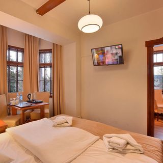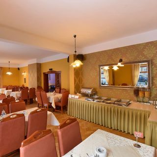 Na pierwszy rzut oka rezydencja i pokoje wyglądają całkiem nieźle. Jednak po zakwaterowaniu okazało się, że temperatura w pokoju nie przekraczała 10°C. Po poruszeniu tematu z obsługą, tłumaczyli , że w dniu naszego przyjazdu zostało włączone ogrzewanie i pokoje były wywietrzone przez sprzątaczki... Także pierwszą noc razem z dziećmi spaliśmy w dresach bo inaczej się nie dało. Pomijając fakt, że dobrze wiedzieli, że będziemy z dziećmi. W Wigilię mąż jeździł po mieście, żeby kupić jakiś grzejnik bo temperatura w pokoju wynosiła max do 15°C. Sala kominkowa, nie posprząta, zagracona jakimiś rupieciami. Mało tego problem z napaleniem w kominku, codziennie trzeba było się prosić o rozpalenie. Po awanturze z właścicielem udało się rozpalić w kominku dopiero kolejnego dnia, bo o godzinie 20.00 właścicielowi już nie opłacało się napalić. A do końca pobytu właściciel bardzo nas unikał. Sala zabaw dla dzieci nie powinna być dopuszczona do użytku. Schody w sali zabaw bardzo wysokie, zrobione z gołej płyty OSB w żaden sposób nie obrobione (ostre krawędzie, wystające zadry). Zabawki zniszczone, popsute. O godzinie 20.00 całkowicie wyłączone ogrzewanie. Przechowalnia sprzętu to po prostu nieogrzewany schowek na szczotki. Śniadania w formie bufetu szwedzkiego, czasami na ciepło jajecznica wymiennie z kiełbaskami (dwa razy w ciągu 5 dniowego pobytu), mleko do płatków zimne (podgrzewane dopiero na życzenie) herbata w dzbankach na stołach, kawa z "20letniego" expresu, który co chwilę się psuł. Obiadokolacje serwowane na półmiskach. Zupa w wazie, ziemniaki 2 kulki/os, mięso jeden rodzaj 1szt./os. , do tego surówka i woda z sokiem w ramach kompotu. Do kolacji nawet herbaty nie było. Brak wody i soków do posiłków. Wigilia opóźniona o 1,5h bo musieliśmy czekać na właścicielkę (0,5h staliśmy pod drzwiami zanim się Pani naszykowała). Dzieci w ogóle nie uwzględnione w kolacji Wigilijnej. A co do słodkiego bufetu to herbaty też nie było, a o mleko do kawy trzeba było się prosić. Właściciele bardzo nie przyjemni, traktowali nas jak zło konieczne. Całkowity brak organizacji. Na stronie ładne opisy a w realu masakra. Cena też nie była niska, a komfort pobytu i jakość posiłków pozostawiają wiele do życzenia. Zdecydowanie nie polecam i na pewno nie wrócimy.
