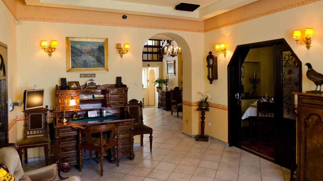 luty 2018Jestem tu po raz trzeci i mam ochotę wrócić ponownie. Świetny budynek, piękne, stylowe wnętrza. Antyczne meble, obrazy tworzą niepowtarzalną atmosferę. Przemiła obsługa, rodzinna atmosfera. Dobre śniadania z cichą muzyką w tle.