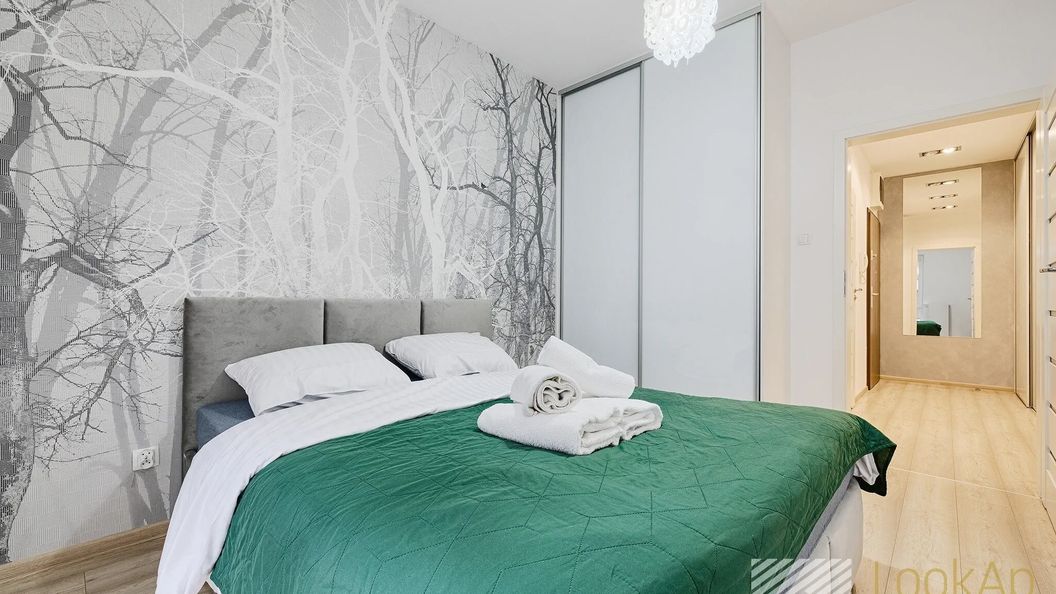 Apartament 2-pokojowy został w pełni zaprojektowany oraz przystosowany do wypoczynku maksymalnie 4 osób dorosłych. Składa się z salonu połączonego z aneksem kuchennym, oddzielnej sypialni, łazienki z WC oraz balkonu. Wysoki standard wykończenia oraz gustowne dodatki nadają wnętrzu niepowtarzalnego, eleganckiego charakteru. Doskonałe wyposażenie apartamentu obejmuje wszelkie potrzebne meble oraz sprzęty, takie jak: łóżko małżeńskie, rozkładana sofa, krzesła, stół jadalniany, stoliki kawowe, TV z płaskim ekranem, lodówka, piekarnik, płyta indukcyjna, czajnik elektryczny, pralka, żelazko, suszarka do włosów, odkurzacz. Poza tym apartament posiada dodatkowo: zastawę stołową, sztućce, przybory kuchenne, garnki, patelnię, filiżanki, kubki, świeżą pościel, puszyste ręczniki i elementy ozdobne, które pozwolą poczuć się jak w domu. W ofercie apartamentu znajduje się również telewizja kablowa oraz bezpłatne WiFi. Parking jest dodatkowo płatny na miejscu, czynny na terenie osiedla 24 godziny na dobę lub płatny parking miejski w wyznaczonych miejscach w okolicy apartamentowca.