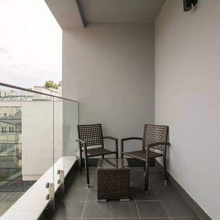 Ten w pełni klimatyzowany apartament o wysokim standardzie wykończenia położony jest w nowoczesnej kamienicy Na Fali o niepowtarzalnej architekturze.