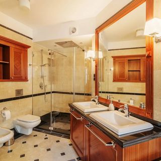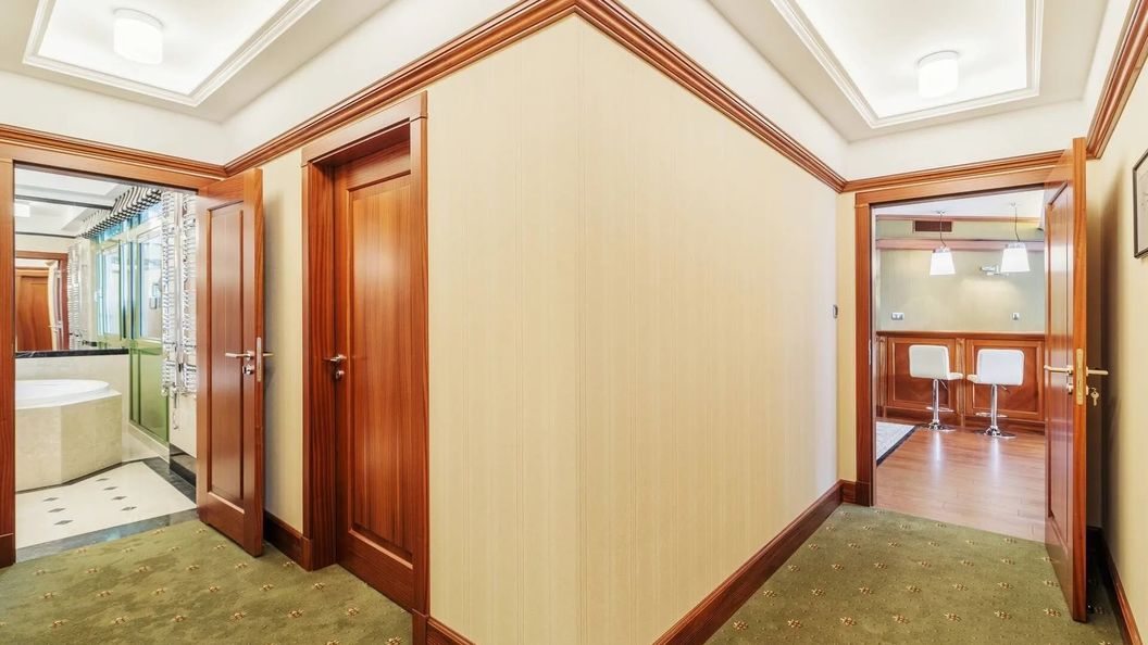 W pełni klimatyzowany apartament składa się z pokoju dziennego z rozkładaną sofą dwuosobową, barkiem, częścią jadalną i tarasem, sypialni z dwoma łóżkami pojedynczymi z możliwością łączenia w jedno podwójne, sypialni z łóżkiem podwójnym i garderobą, sypialni z łóżkiem pojedynczym, kuchni, łazienki z WC i prysznicem, drugiej łazienki z WC i wanną z hydromasażem oraz dodatkowego balkonu.