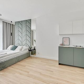 Apartament składa się z pokoju dziennego z aneksem kuchennym, balkonu oraz łazienki.