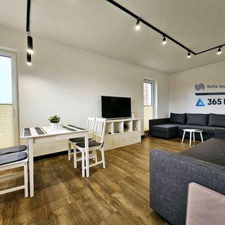 W salonie znajdują się dwie rozkładane kanapy, które zapewniają odpowiednią przestrzeń do wypoczynku. Wszystko to sprawia, że apartament jest idealnym miejscem dla pary czy niewielkiej grupy przyjaciół.