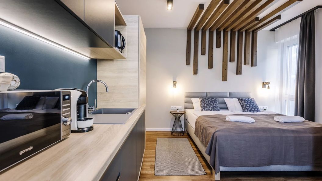 Niektóre pokoje posiadają balkon lub taras, pozwalając Ci cieszyć się piękną pogodą na świeżym powietrzu w każdej chwili. Klimatyzatory działają w niektórych pokojach, abyś mógł się cieszyć pobytem u nas, nawet podczas gorących letnich dni (prosimy sprawdź arkusz informacyjny pokoju aby upewnić się czy klimatyzacja jest częścią wyposażenia). W przypadku jeżeli zabierzesz laptopa ze sobą, możesz być online poprzez bezprzewodowy dostęp do Internetu (WiFi)dostępny w apartamencie.